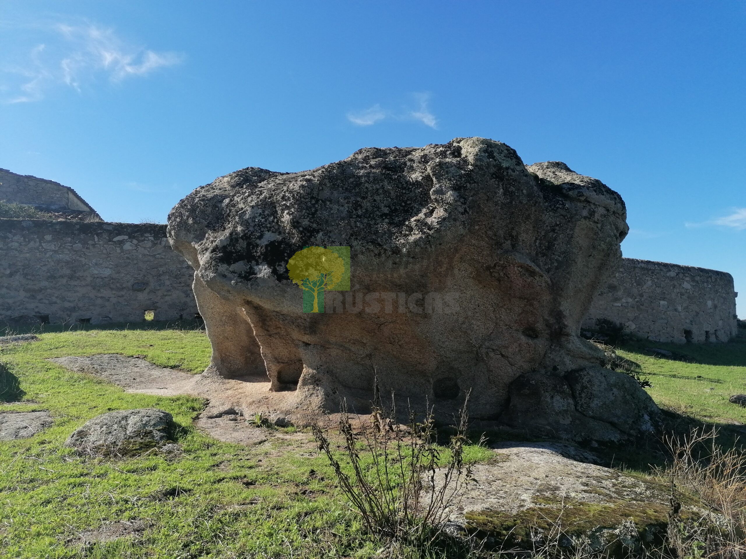 VALLADA EN TODO SU PERÍMETRO CON MALLA GANADERA Y PARED DE PIEDRA.